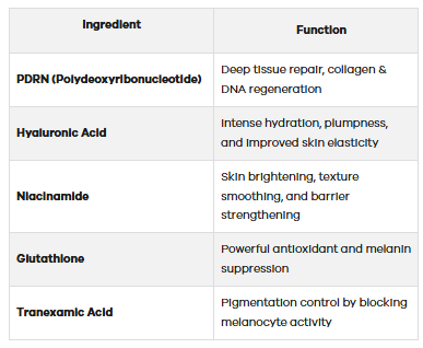 Unlike traditional monotherapy boosters, Lusciderm PDRN+ is engineered with a multi-action complex designed to target hydration, inflammation, pigmentation, and aging all at once.